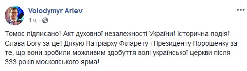 На церемонии присутствовали президент Украины Петр Порошенко, председатель Верховной Рады Андрей Парубий и предстоятель Православной церкви Украины Епифаний.