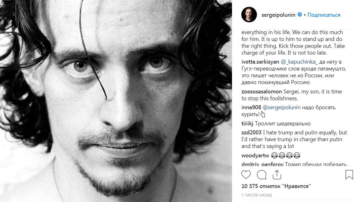 Пользователи Instagram начали массово сомневаться в адекватности артиста, а также указывали на грубейшие орфографические ошибки в публикации. Некоторые подписчики высказывают мнение, что подобные посты Полунина – это троллинг.