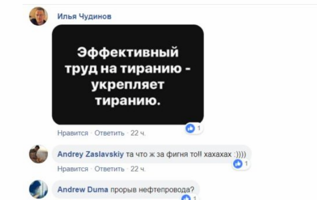 В Сети карикатуру восприняли замечательно, с юмором и дополнениями. «Эффективный труд на тиранию укрепляет тиранию», «прорыв нефтепровода», «Прорыв? Что, где-то прорвало канализацию?», «Самый низкий рейтинг доверия Пуйлу за 20 лет, вот он, прорыв!», — пишут пользователи.