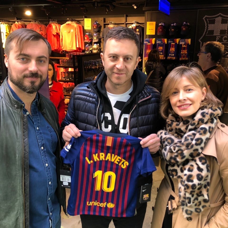 Так, недавно Кравец опубликовала совместный кадр с мужем (на фото слева – прим. ред.) и крестным папой своего сына Ивана. Мужчина держит в руках футболку легендарного футбольного клуба «Барселона», на которой красуется имя «И. Кравец». «Форма есть. Дело за малым. Малый – Ivan Kravets. А вдруг?» – подписала фото Елена.