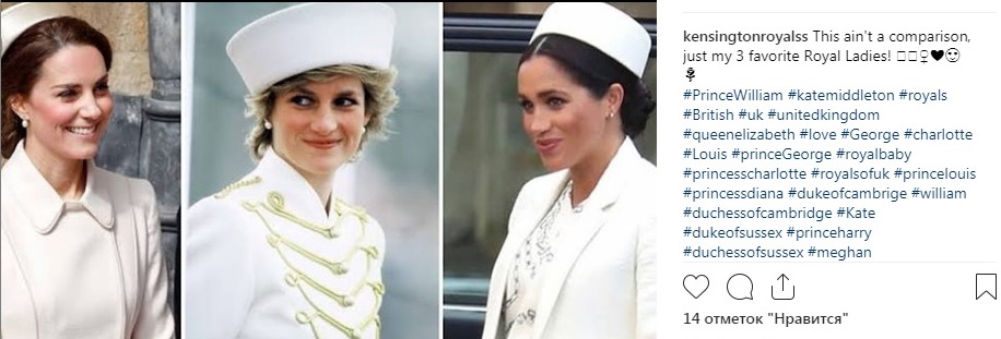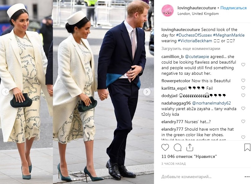 В Вестминстерское аббатство на специальную торжественную службу прибыли члены королевской семьи. Меган Маркл, которая находится на восьмом месяце беременности, вдохновилась образом покойной матери принца Гарри, принцессы Дианы. Как сообщает Harper's Bazaar, герцогиня оделась в стиле Леди Ди.