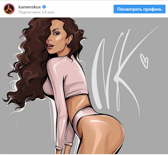 На своей страничке в Instagram Каменских опубликовала рисунок, созданный иллюстратором Леной Щербаченко. На картине Настя изображена в достаточно откровенной позе, в белье, демонстрируя свою попу. В комментариях к посту сразу же началось бурное обсуждение этой работы.