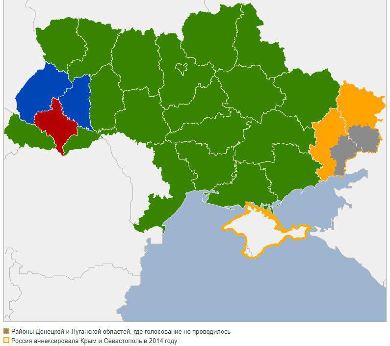 Как голосовали украинцы в регионах страны, показано на карте, - передает Апостроф.