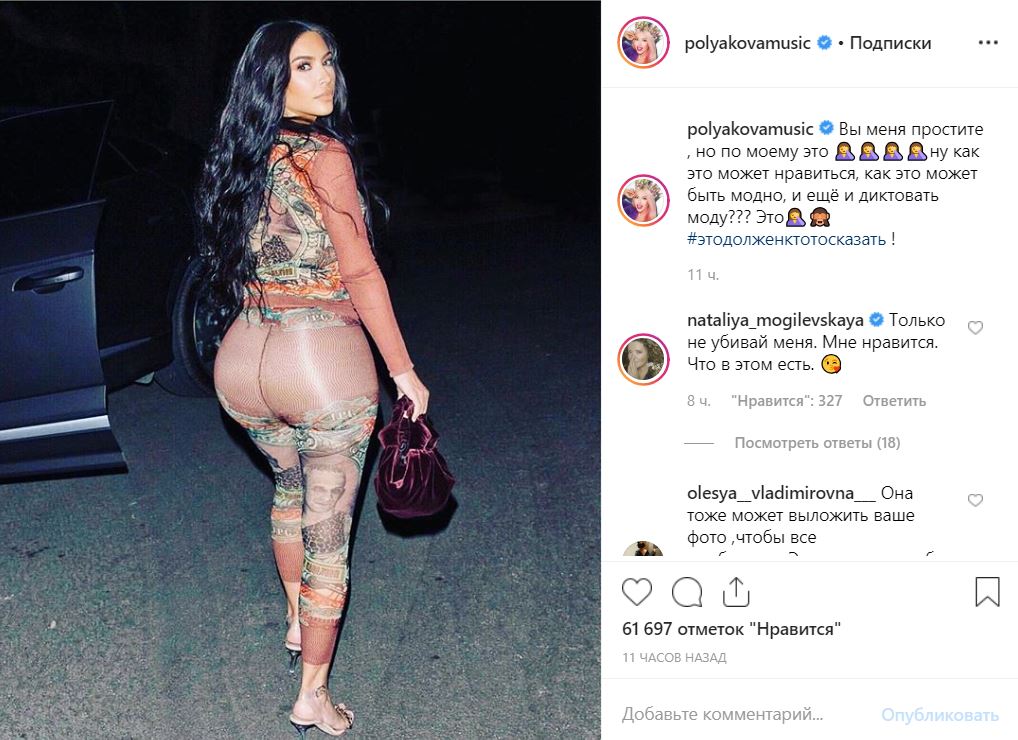Знаменитые украинские певицы Оля Полякова и Наталья Могилевская не сошлись во мнениях насчет наряда Ким Кардашьян. Об этом стало известно из комментариев звезд на странице Кардашьян в Instagram.