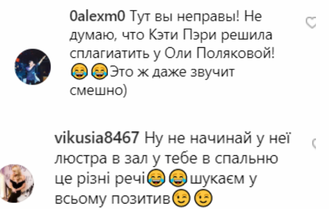 Однако в этот раз Оля Полякова решила в очередной раз поразить своей критикой в адрес звезды. Дело в том, что артистка показала провокационное фото, в подписи под которым обвинила Кэти Перри в плагиате.