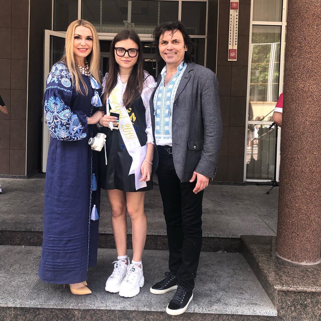 Поддержать дочь-выпускницу пришел и отец Ани, актер Виталий Борисюк. Звездные супруги нарядились в национальные наряды: Сумская надела роскошное платье-вышиванку, а Борисюк появился в вышитой рубашке, черных брюках и пиджаке.