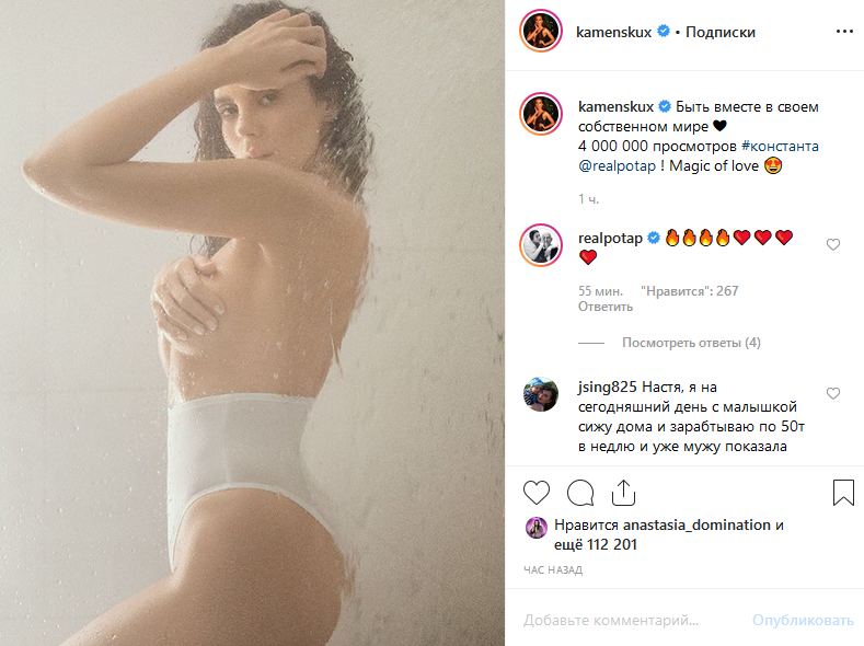Певица опубликовала в своем Instagram снимок, на котором она запечатлена топлес. Настя позирует в душевой кабине в одних трусах, прикрывая обнаженную грудь рукой.