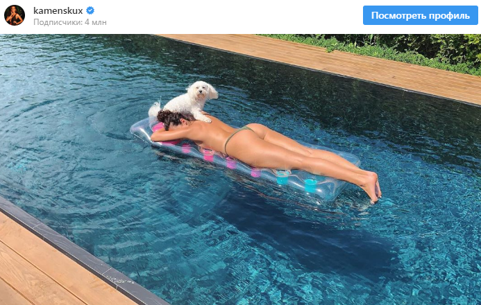 Украинская певица Настя Каменских (NK) разместила в Instagram фото, для которого позировала в воде, лежа на надувном матрасе без верха купальника и в стрингах.