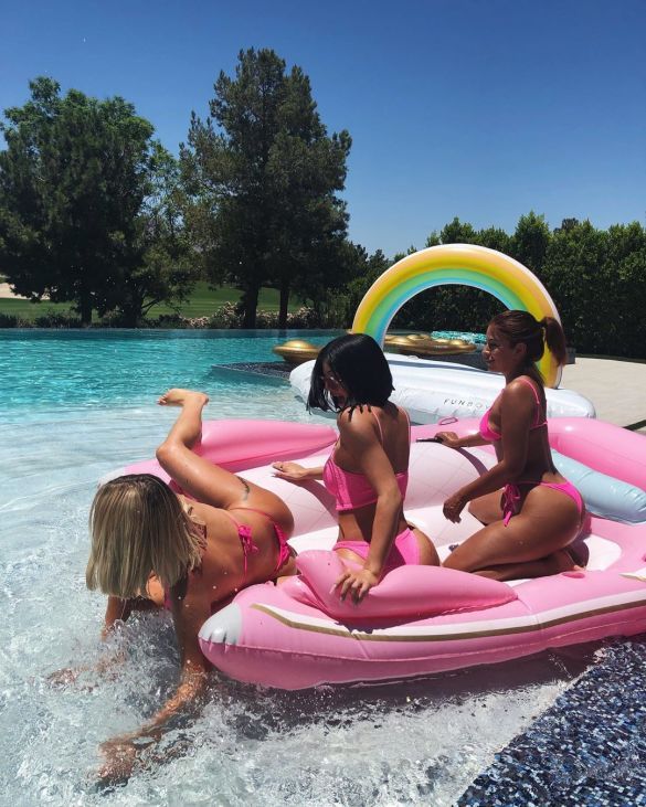 21-летняя звезда реалити успевает и дочь воспитывать, и развивать свой бьюти-бренд, и вести свой Instagram, где у нее рекордные 138 млн фолловеров.В ее микроблоге много откровенных фотографий. Так, недавно Кайли показывала снимки с дня рождения ее подруги. Вечеринка прошла у бассейна, и все девушки были одеты в розовые купальники, плавали на розовом матрасе и откровенно позировали.