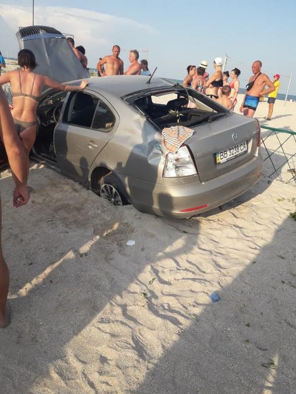 Вчера, 25 июня, около шести часов вечера на Федотовой косе что в Кирилловке, девушка за рулем Sкoda не справилась с управлением и вылетела на пляж.