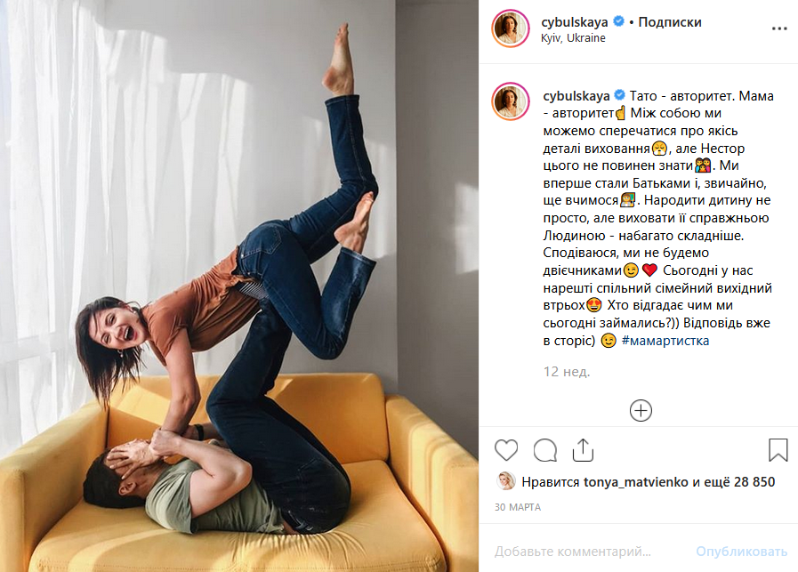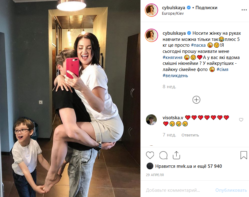 Цибульская изредка публикует в соцсетях фотографии с мужем, однако всегда закрывает его лицо. До недавнего времени певица не показывала публике и своего сына Нестора. И только спустя четыре года решилась показать мальчика.