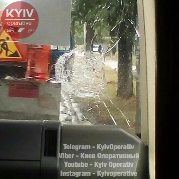 В Киеве неизвестный мужчина устроил серьезное ЧП, бросив камень в лобовое стекло маршрутки.