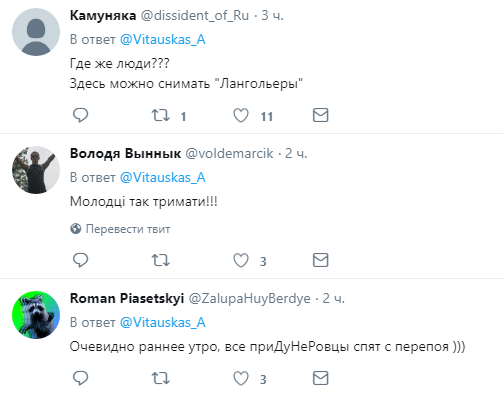 "Красавцы)", "Странно что орки не сбежались", "Молодцы так держать!!!", "Очевидно раннее утро, все приДуНеРовцы спят с перепоя", "ну что можно сказать - Слава Украине!", "До слез…", "Это сильно!", - пишут комментаторы.