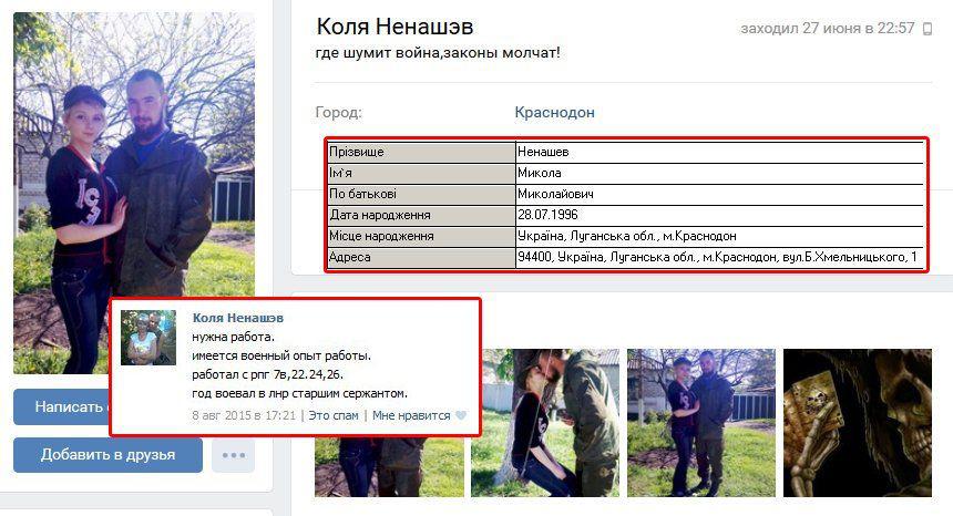 "Старший сержант ЛНР ищет работу наемником в России", - процитировал "Миротворец" пост со страницы Ненашева в соцсетях.