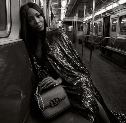 Британская супермодель, актриса и певица продемонстрировала отличную физическую форму. 49-летняя Наоми Кэмпбелл позировала в вагоне метро для рекламной кампании Valentino.