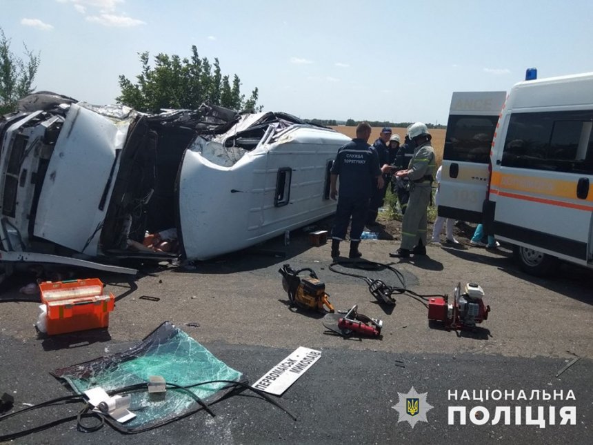 Сегодня, 2 июля, примерно в 12:30 на 87 км автодороги Н-24 «Николаев - Благовещенское» вблизи с. Благодатное Арбузинского района произошло столкновение грузового микроавтобуса Mercedes Benz, под управлением 45-летнего водителя, и маршрутного такси Mercedes Sprinter сообщением «Николаев-Первомайск», за рулем которого находился 35-летний мужчина.