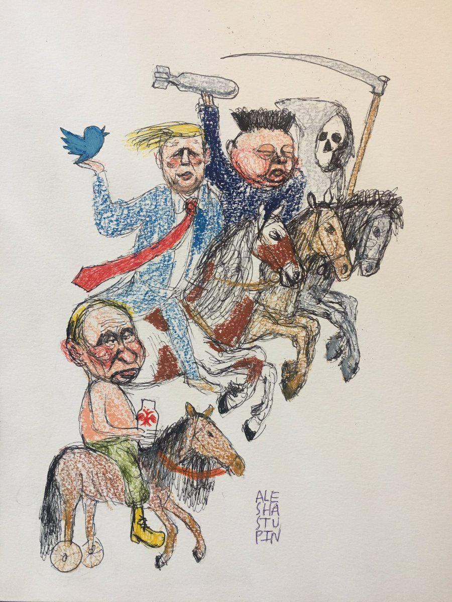 Соответствующую карикатуру опубликовал Алеша Ступин на своей странице в Twitter.