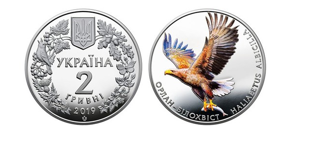 В среду, 10 июля 2019 года, Национальный банк Украины введет в оборот две новые монеты номиналом 2 и 10 гривен. Они будут посвящены орлану-белохвосту. Об этом сообщает пресс-служба НБУ.