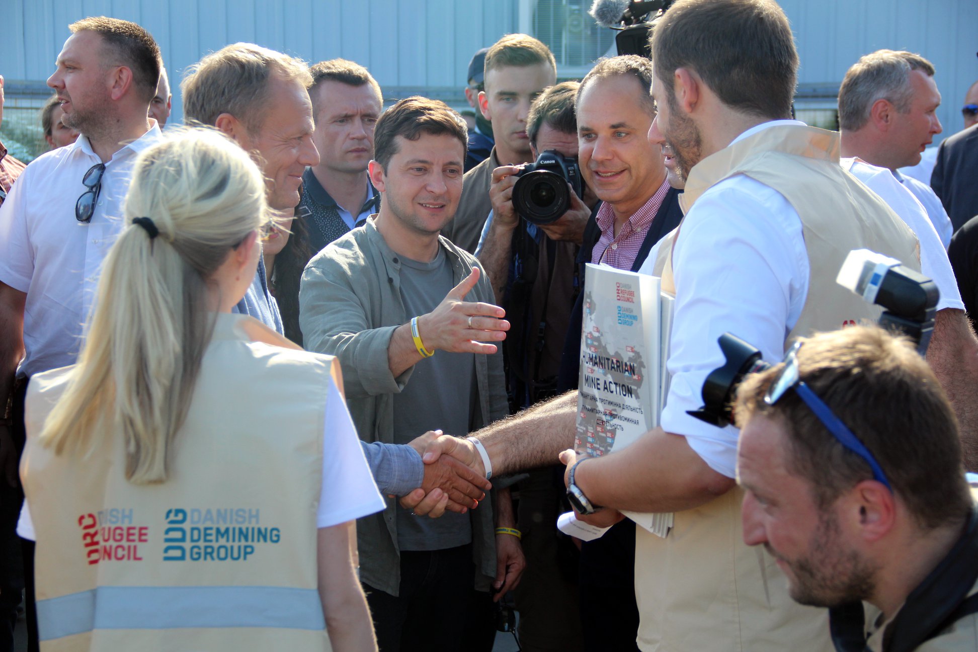 В воскресенье, 7 июля, президент Украины Владимир Зеленский и президент Европейского совета Дональд Туск побывали в районе разведения сил и средств в Станице Луганской на Донбассе.