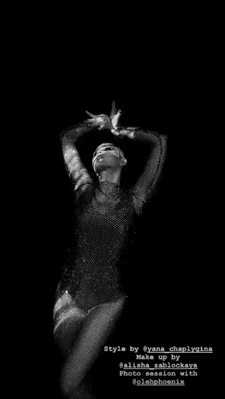 На другом фото MARUV предстала в сетчатом прозрачном платье со стразами.