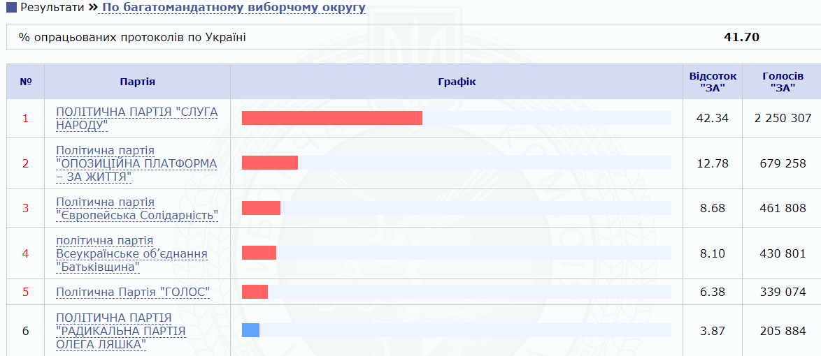 ЦИК обработала почти 42% протоколов: лидирует партия "Слуга народа"