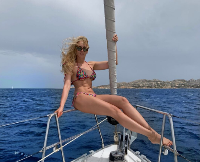 Украинская певица Оля Полякова обнародовала в Instagram снимок, для которого позировала в раздельном купальнике на борту яхты.