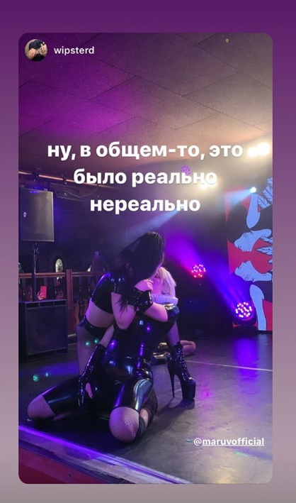 Российским фанатам определенно не понравилось такое проявление любви к своей стране. Зато они оценили все остальное, что происходило на сцене, в стиле скандальной Maruv — поцелуй взасос с одной из своих девушек с балета и демонстрация промежности в позе догги-стайл.