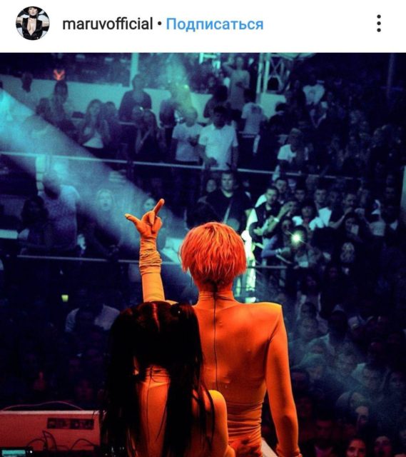 Так, на своей странице в социальной сети Инстаграм Марув выложила подборку фото с последнего концерта в Новосибирске, которую подписала «Моя концертная жизнь». На снимках запечатлены неприличные жесты, которые исполнительница показывает прямо зрителям.
