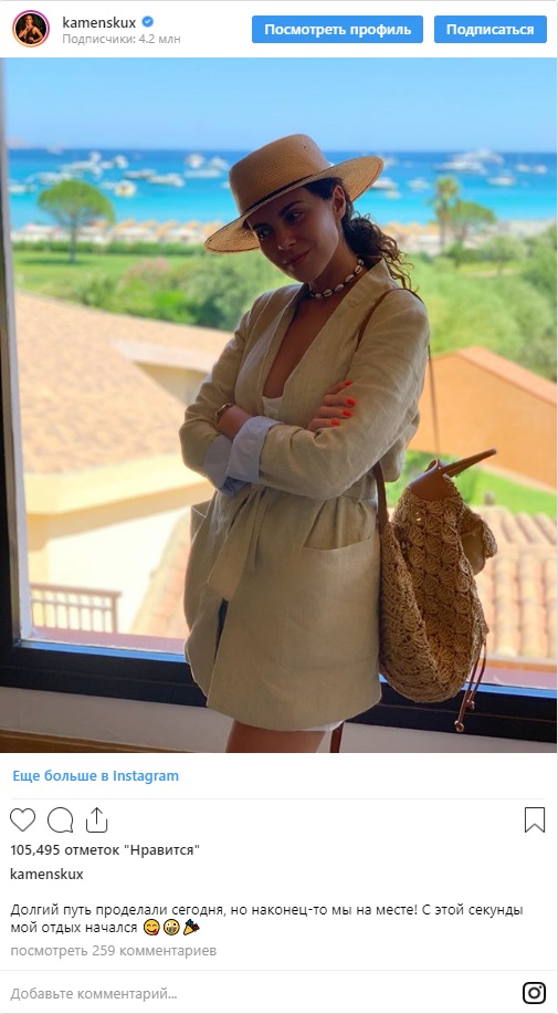 32-летняя певица Настя Каменских, вероятно, со своим мужем Потапом улетела на очередной летний отдых. О чем, собственно, сама и сообщила своим подписчиками в Instagram.