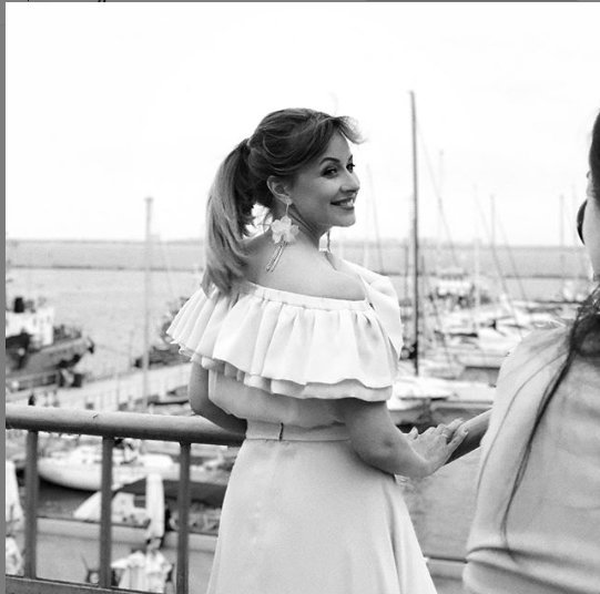 Актриса студии «Квартал 95» Елена Кравец опубликовала в своем микроблоге оригинальный черно-белый фотоснимок, на котором запечатлена во время визита в Одессу на известный юмористический фестиваль.