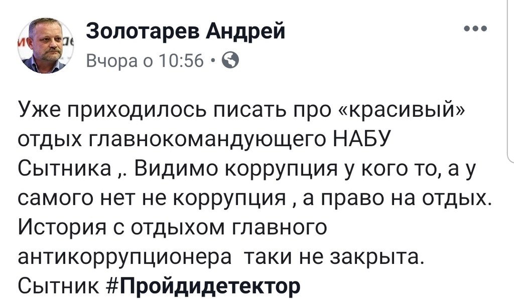 Суд в Ровненской области рассматривает дело об элитном отдыхе директора Национального антикоррупционного бюро Артема Сытника, а блогеры в соцсетях тем временем призывают обвиняемого пройти тест на детекторе лжи.