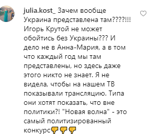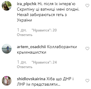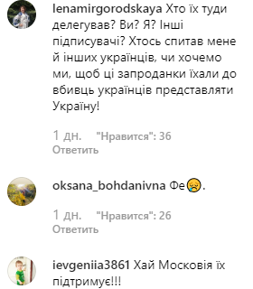 «Никаких конкурсов с убийцами», «Эти сестры не могут представлять Украину нигде и никогда. Лично себя да, но не Украину. И разве мы участвуем в конкурсах, которые проводит страна-агрессор?» — удивляются комментаторы.