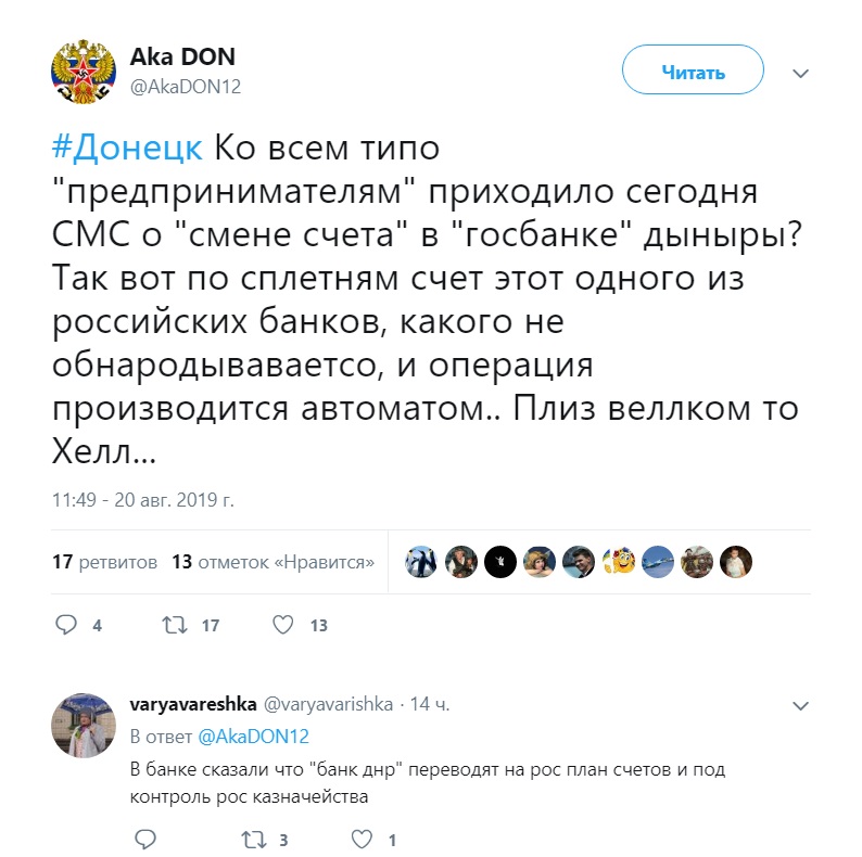 Пользователи твиттера 20 августа по хэштегу #Донецк также начали сообщать об активной sms-рассылке, которая стала поступать пользователям по анонсированному изменению счетов.