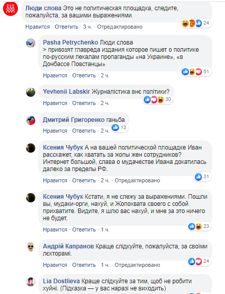"А на вашей политической площадке Иван расскажет, как хватать за ж*пы жен сотрудников? Интернет большой, слава о мудачестве Ивана докатилась далеко за пределы РФ".
