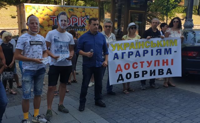 27 августа в Киеве несколько десятков фермеров вышли на митинг против монополизации рынка минеральных удобрений в Украине. Протестующие «привели» под здание Кабинета министров монополиста Дмитрия Фирташа и Первого-вице-премьера – Министра экономического развития и торговли Степана Кубива.