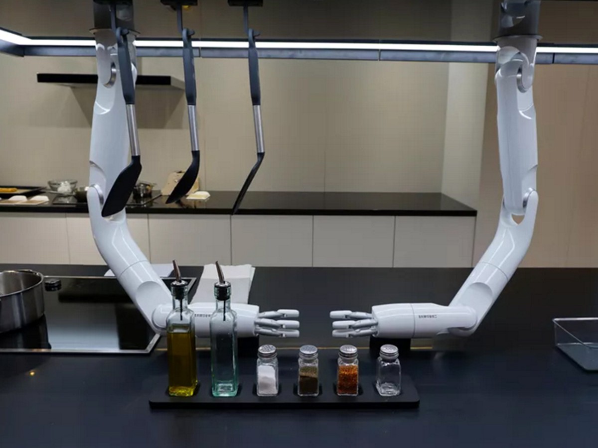 Наибольший интерес у посетителей вызвал кухонный робот Samsung Bot Chef. Это две свисающие с потолка «руки». Они способны сделать всю грязную и подготовительную работу — почистить и порезать овощи или фрукты, замесить тесто, взбить яйца, добавить специи и приправы в салат. Управлять этим помощником можно, установив на смартфон специальное приложение. Оно не только передает роботу команды, но и снабжает его рецептами. В Берлине был показан опытный образец. Представители компании уверяют, что в скором будущем начнется серийный выпуск Bot Chef.
