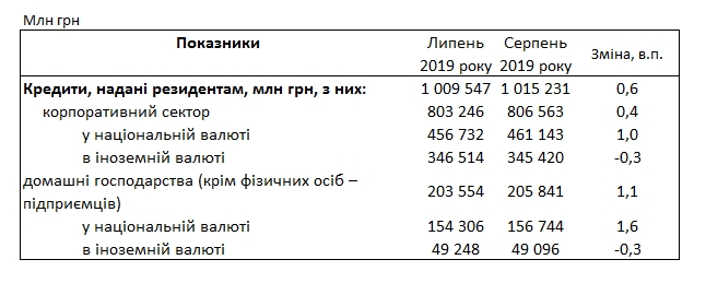 Кредитный портфель банков за месяц вырос на 0,6% до 1 015 млрд грн, в т.ч. для населения вырос на 1,1% до 205 млрд грн, предприятий - вырос на 0,4% до 806 млрд грн.