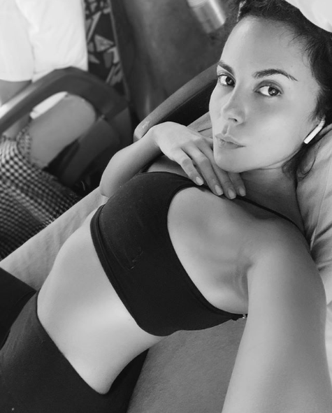 В Instagram поп-дива опубликовала черно-белое фото, на котором она позирует в топике, обнажив подтянутый живот.