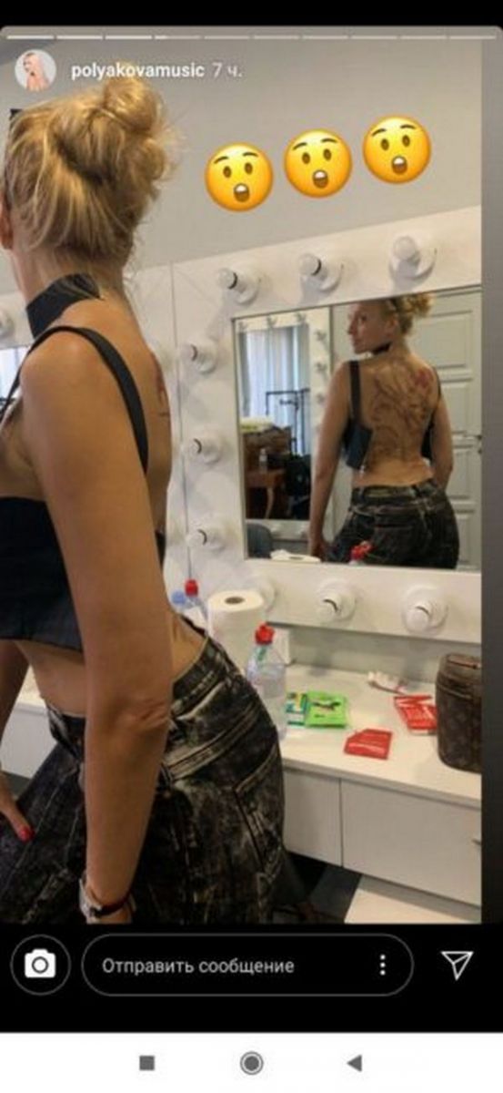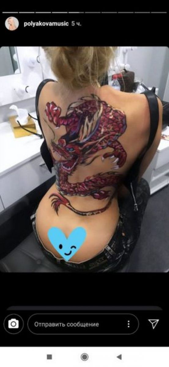 Популярная певица Оля Полякова, эпатирующая публику откровенными фото, снова удивила сеть. Она ошарашила дерзким образом. В Instagram-сториз певица показала, как создает красоту — тату на всю спину с изображением огнедышащего дракона.