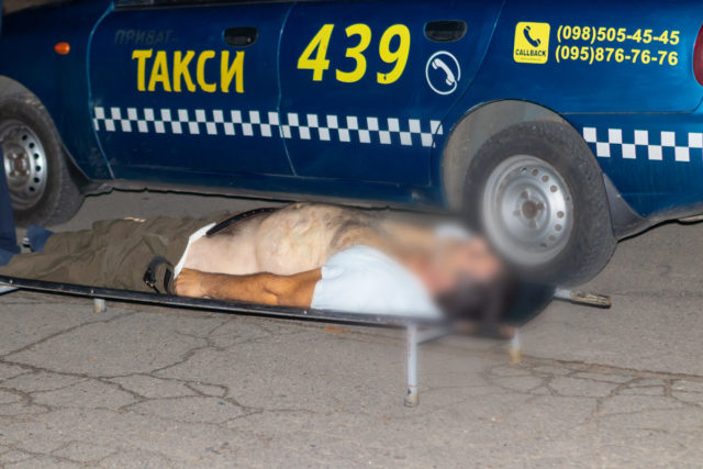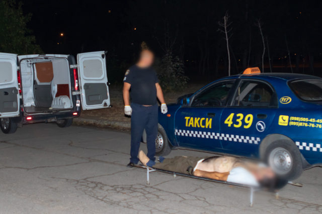 Труп обнаружили около 3:00. Судя по всему, мужчина средних лет (на вид ему около 50) работал таксистом. Прохожие вызвали патрульную полицию и скорую помощь.