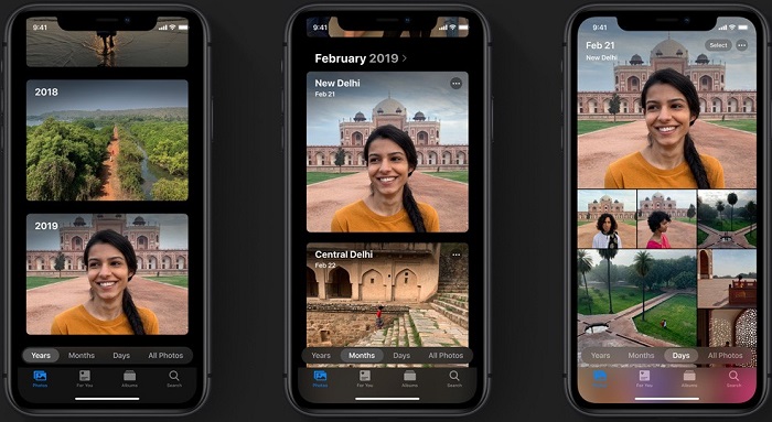Разработчики обновили в iOS 13 вкладку «Фото». С усовершенствованной организацией альбомов человеку проще отыскать фотографии, сделанные в конкретный день, месяц или год. При этом искусственный интеллект автоматически скроет похожие кадры, выбирая для демонстрации лучшие, а также фото документов и скриншоты.