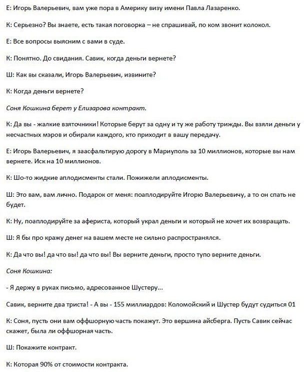 Кроме того, юрист Павел Елизаров, которого Шустер пригласил в студию, попросил Коломойского не мешать новой власти.