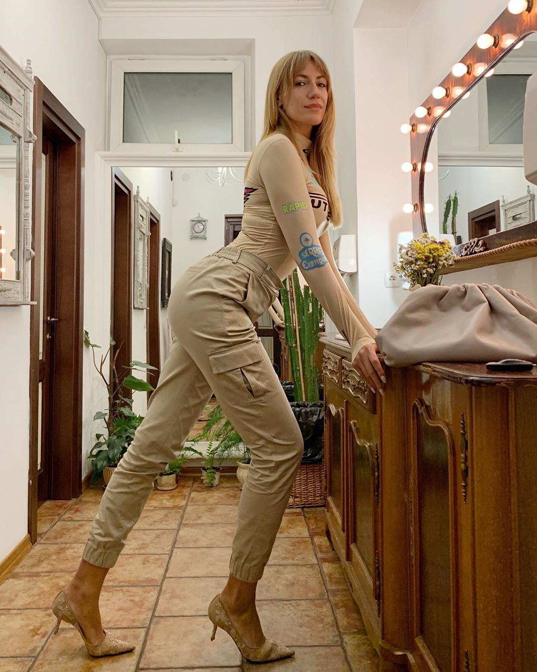 На своей странице в Instagram Леся показала свой "образ дня" - она позирует в бежевой водолазке, которая выгодно подчеркнула ее тонкую талию, и брюках в тон. Завершают аутфит туфли на каблуке, а также бежевая сумочка, что лежит у зеркала.