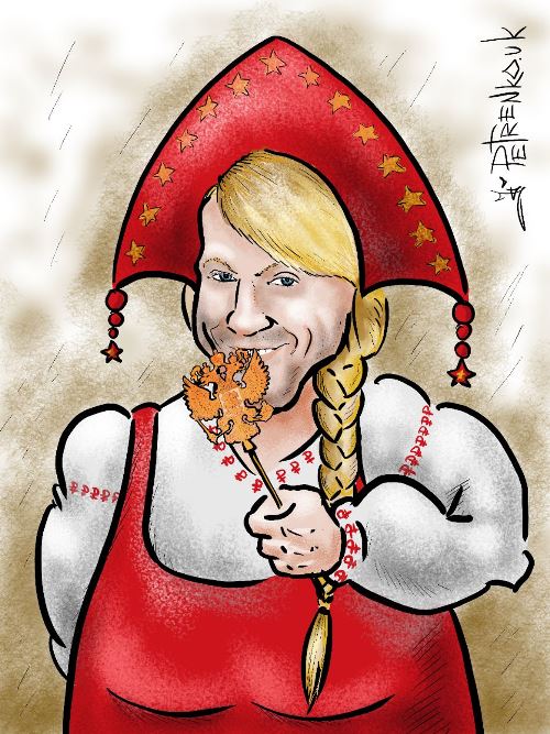 "Винник - русские деньги кровью не пахнут...", - подписал он фотожабу, на которой изображен певец в российском народном костюме, однако в женском, с кокошником на голове.