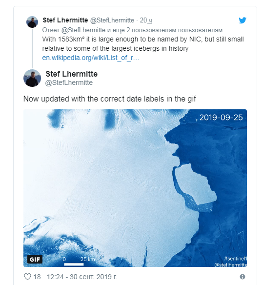 От Антарктиды откололся самый большой за последние 50 лет айсберг весом в 315 миллиардов тонн