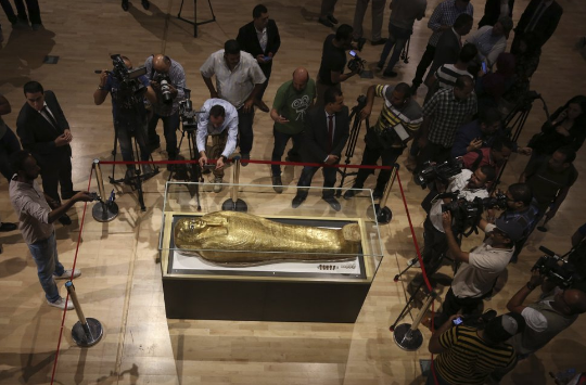 В Национальном музее египетской цивилизации в Каире публике представили позолоченный древний гроб жреца Неджеманха, который Нью-Йоркский музей изобразительных искусств возвратил на прошлой неделе.