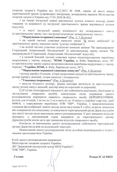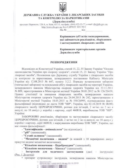 Цереброкурин широко использовался в лечении мозга и заболеваний нервной системы. Препарат в виде раствора по 10 ампул в коробке производства ООО "НИР" серии №460818 не допустили к продаже из-за большого количества подделок.