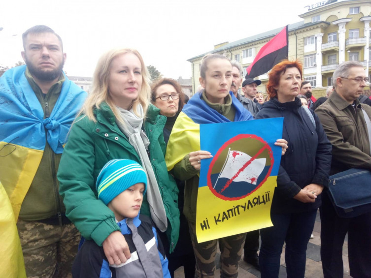 В воскресенье, 6 октября, во многих городах Украины собрались вече против согласования накануне в Минске так называемой "формулы Штайнмайера".