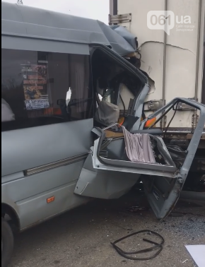 В Запорожье маршрутка врезалась в фуру: одна пассажирка погибла, 8 человек в больнице (фото)