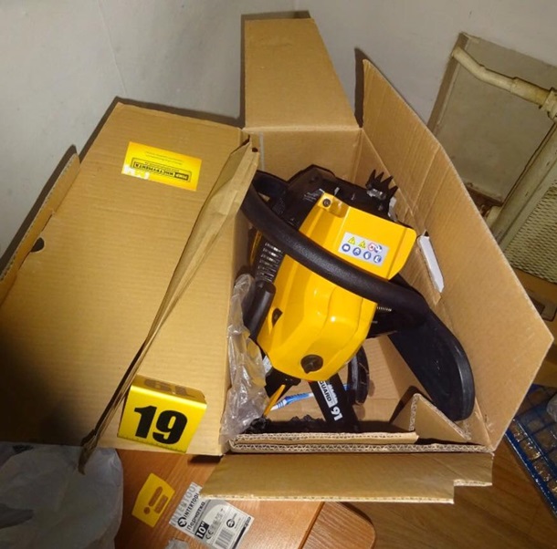 При осмотре места происшествия сотрудники полиции обнаружили бензопилу, три канистры с горюче-смазочной жидкостью, резиновую маску, топор, пакеты и другие принадлежности, с помощью которых злоумышленник, вероятно, планировал скрыть следы преступления расчленив тело и вывезти его из квартиры.